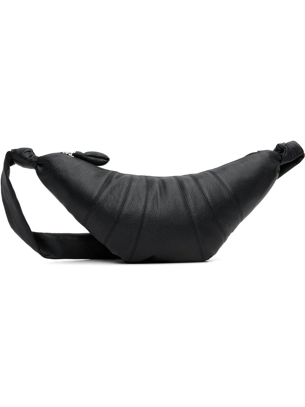 Paneled grained leather messenger bag. · Knotted detailing at crossbody strap · Padded pull-tab at zip closure · Patch pocket at interior · Cotton canvas lining · H8.5" x W18" x D2" Supplier color: Black Leather. Made in Spain 252646M170049