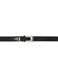 Grained leather belt in black. · Hardware at end · Detachable buckle at pin-buckle fastening · Antiqued silver-tone hardware · W1.25" Supplier color: Black Leather. Made in Italy 251646M131003