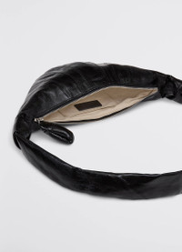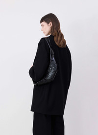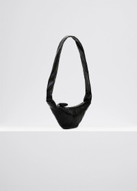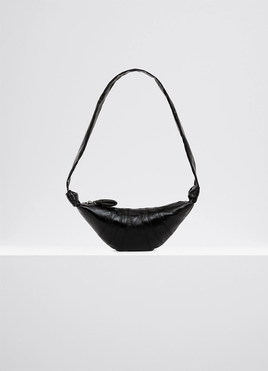 This classic LEMAIRE bag is part of the iconic Croissant family. The Small Croissant is made from coated cotton with a crisp texture and a shiny finish, which was granted a GOT Certification. Its distinctive surface adds a tactile element and contributes to its durability. Inspired by the shape of the eponymous pastry, this vegan bag is achieved through an assembly of top-stitched cutouts, blending style and functionality. It features a matching looped zip puller and side knot finishings. It will host small accessories such as a smartphone, a card holder and a wallet, and can be worn over the shoulder or cross-body. DETAILS - This bag can be worn on the shoulder or cross-body - Height of the shoulder strap: 43cm / 17in - Length: 35cm / 14in - Width: 16cm / 6in - Depth: 5cm / 2in - Lining in cotton canvas - Metal Looped zip puller - Small interior patch pocket (can contain cards, small keys or a public transportation pass) - Main compartment (can contain smartphone, card holder, Airpods Pro 2 case and wallet) - Side knot finishings - Embossed logo inside Made in Tunisia Style: BG0003 LF1329 FABRICS & CARE Main Fabric: 100% Cotton Main Lining: 100% Cotton Do not wash Do not bleach Do not tumble dry Do not iron Professional cleaner only