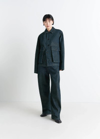 This unisex blouson is made of a Japanesewoven cotton denim with a stiff hand and a raw indigo wash. Its unlined cut is boxy and slightly cropped, with a square hem and a pleated back for ease of movement. Its workwear inspired details include layered gusseted and handwarmer pockets, flatfell seams and adjustable cuffs. DETAILS Corozo buttons French placket Welt front pocket Loose fit Made in Morocco Style : OW306 LD068 These models are 172 cm & 185 cm and are wearing a size 36/S & 48/M (FR) FABRICS & CARE Main Material: 100% Cotton Do not wash Do not bleach Do not tumble dry Cool ironing Soft dry clean