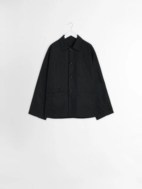 This Boxy Single Breasted Workwear Jacket is a new addition to LEMAIRE’s outerwear vestiaire. It is crafted in cotton linen gabardine, a light and fluid fabric with a soft hand, perfect for the mid-season. It features workwear characteristics such as a horizontal collar, contrast stitching, metallic buttons and adjustable cuffs. This jacket also has multiple pockets: one piped pocket on the chest and two large waist-length pockets, and in the back, a pocket with flap and one slim back pen pocket. DETAILS Unisex Relaxed fit Metal buttons Three front pockets Chest piped pocket Back pen pocket Made in Romania Style: OW1148 LF1350 The Model is 188cm / 6'2'' ft and is wearing a size 48 (M). FABRICS & CARE Main Fabric: 60% Cotton, 40% Lined Main Lining: 100% Cotton Do not wash Do not bleach Do not tumble dry Cool ironing Soft dry clean Discover the traceability