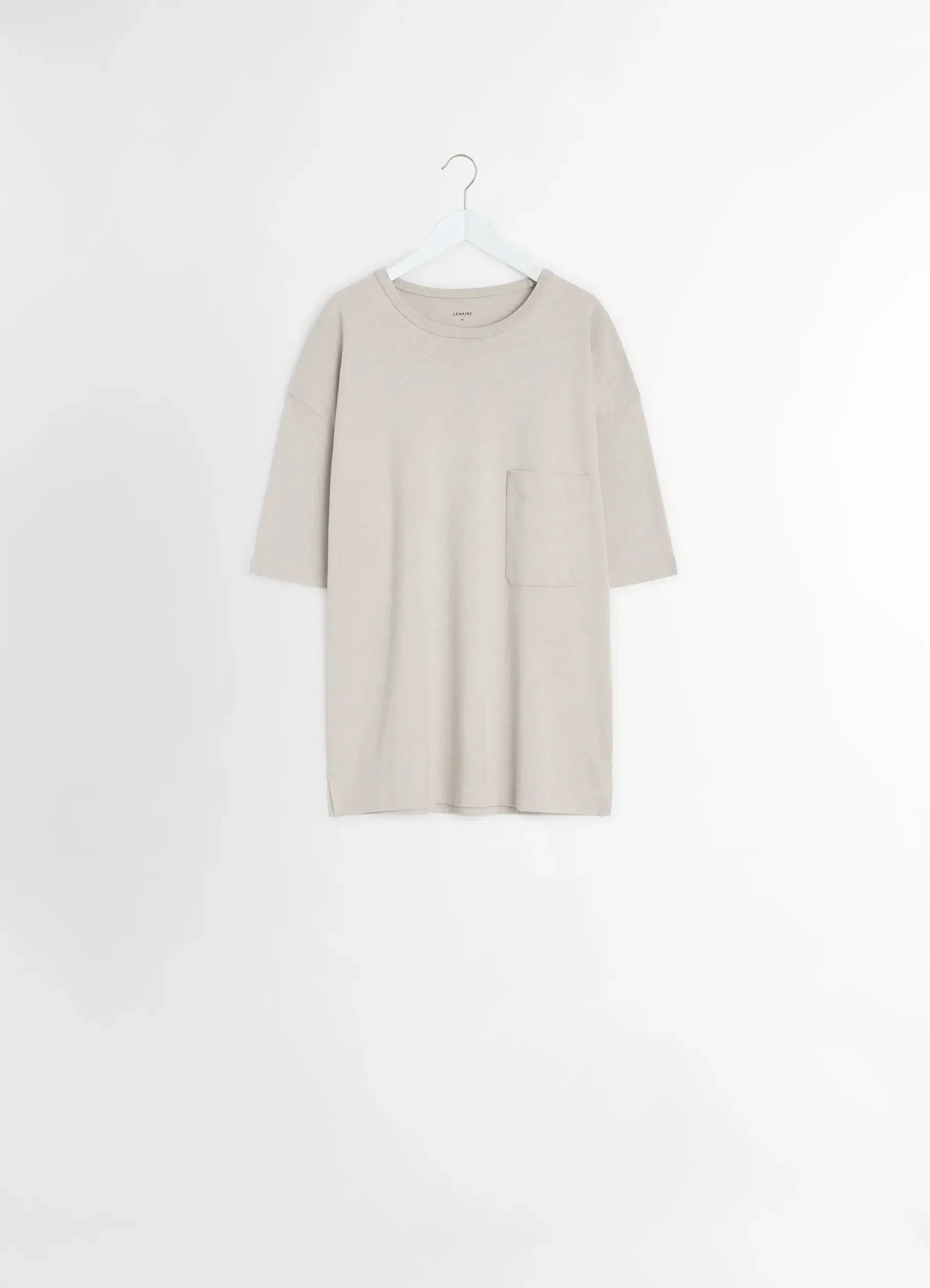 This Boxy SS T-shirt is a new staple of LEMAIRE’s wardrobe. It is made from fluid linen cotton jersey with a soft and pleasant feel against the skin. The Boxy T-shirt features one chest patch pocket, rib finishing on the neckline as well as two small side slits. DETAILS - Boxy fit - Short sleeves - Chest patch pocket Made in Portugal Style: TO1382 LJ1010 FABRICS & CARE Main Fabric: 70% Cotton, 30% Linen Soft wash 30° Do not bleach Do not tumble dry Cool ironing Do not dry clean Dry flat