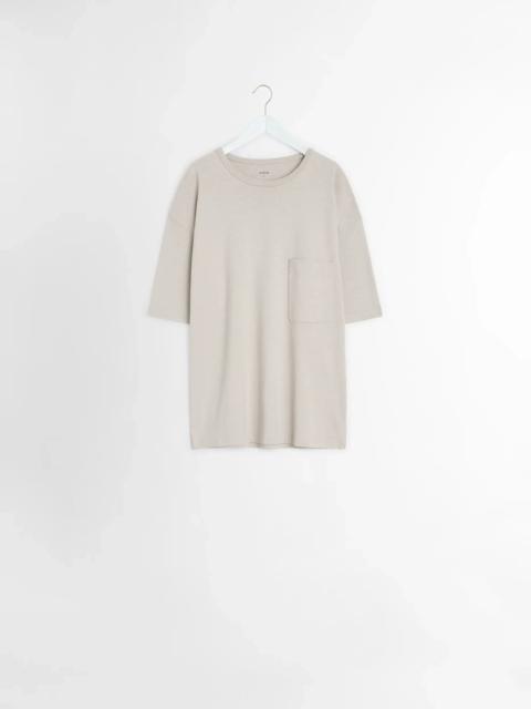 This Boxy SS T-shirt is a new staple of LEMAIRE’s wardrobe. It is made from fluid linen cotton jersey with a soft and pleasant feel against the skin. The Boxy T-shirt features one chest patch pocket, rib finishing on the neckline as well as two small side slits. DETAILS - Boxy fit - Short sleeves - Chest patch pocket Made in Portugal Style: TO1382 LJ1010 The Model is 188cm / 6'2'' ft and is wearing a size 48 (M). FABRICS & CARE Main Fabric: 70% Cotton, 30% Linen Soft wash 30° Do not bleach Do not tumble dry Cool ironing Do not dry clean Dry flat Discover the traceability