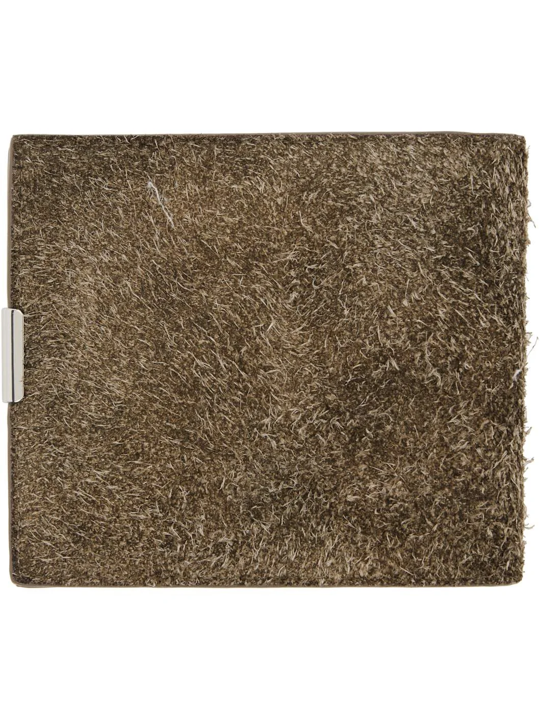 Suede bifold wallet. · Hardware at edge · Eight card slots and two patch pockets at interior · One note slot · Buffed leather lining · H3.75" x W4.25" x D0.5" Supplier color: Velvet Moss Leather. Made in Spain 261646M164002