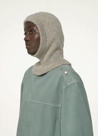 This hood is made of mohair wool that was hand-brushed, giving it a fluffy feel. It fits snugly around the head, with tight rib knitting framing the face and outlining the neck to isolate warmth. DETAILS Fitted shape Ribbed finishings Made in Italy Style : AC1059 LK1007 FABRICS & CARE Main Fabric : 32% Mohair, 19% Polyamide/Nylon, 16% Wool, 16% Viscose, 16% Acrylic, 1% Elasthanne Hand wash Do not bleach Do not tumble dry Cool ironing Soft dry clean Dry flat