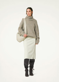 This sweater is made of mohair wool that was hand-brushed, giving it a fluffy feel. It has a loose fit with dropped shoulders and an open crew-neck that is finished with double ribs, accentuating its slightly elongated shape. DETAILS Loose fit Fully fashioned Double rib finishing Made in Italy Style : TO1095 LK1007 This model is 186|177 cm and is wearing a size 48/M|36/S FABRICS & CARE Main Fabric : 32% Mohair, 19% Polyamide/Nylon, 16% Wool, 16% Viscose, 16% Acrylic, 1% Elasthanne Hand wash Do not bleach Do not tumble dry Cool ironing Soft dry clean Dry flat