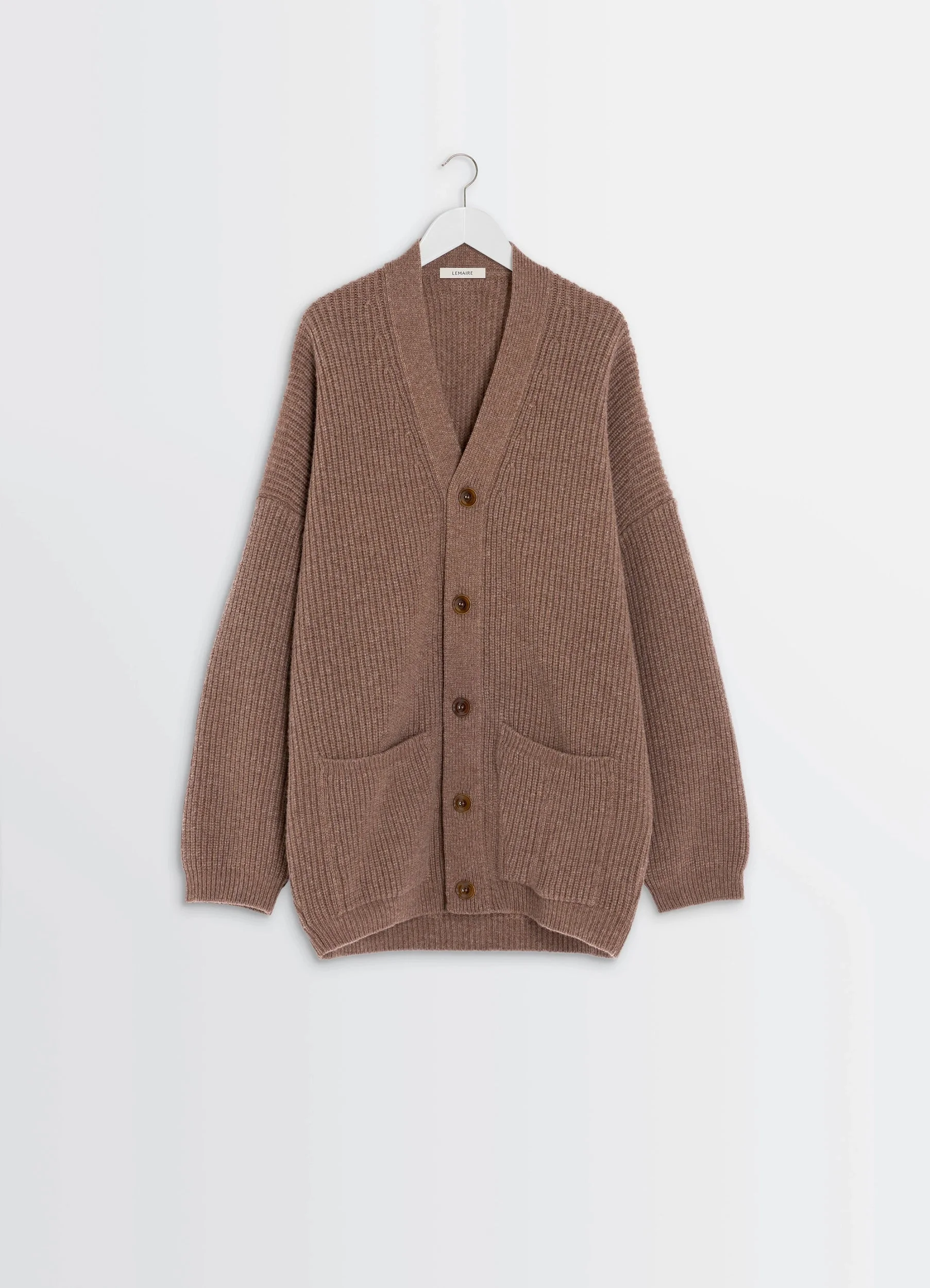 Crafted from Shetland wool, a dense yet warm knit, this ribbed cardigan is designed as a true outdoor piece. DETAILS Soft Shetland cardicoat Oversized cut V-neck Front button closure Long sleeves Patch side pockets Rib-knit trim Made in Italy Style : CO1139 LK107 The models are 177 cm and 187 cm and are wearing sizes 36 (S) and 48 (M). FABRICS & CARE Main Material: 100% Wool