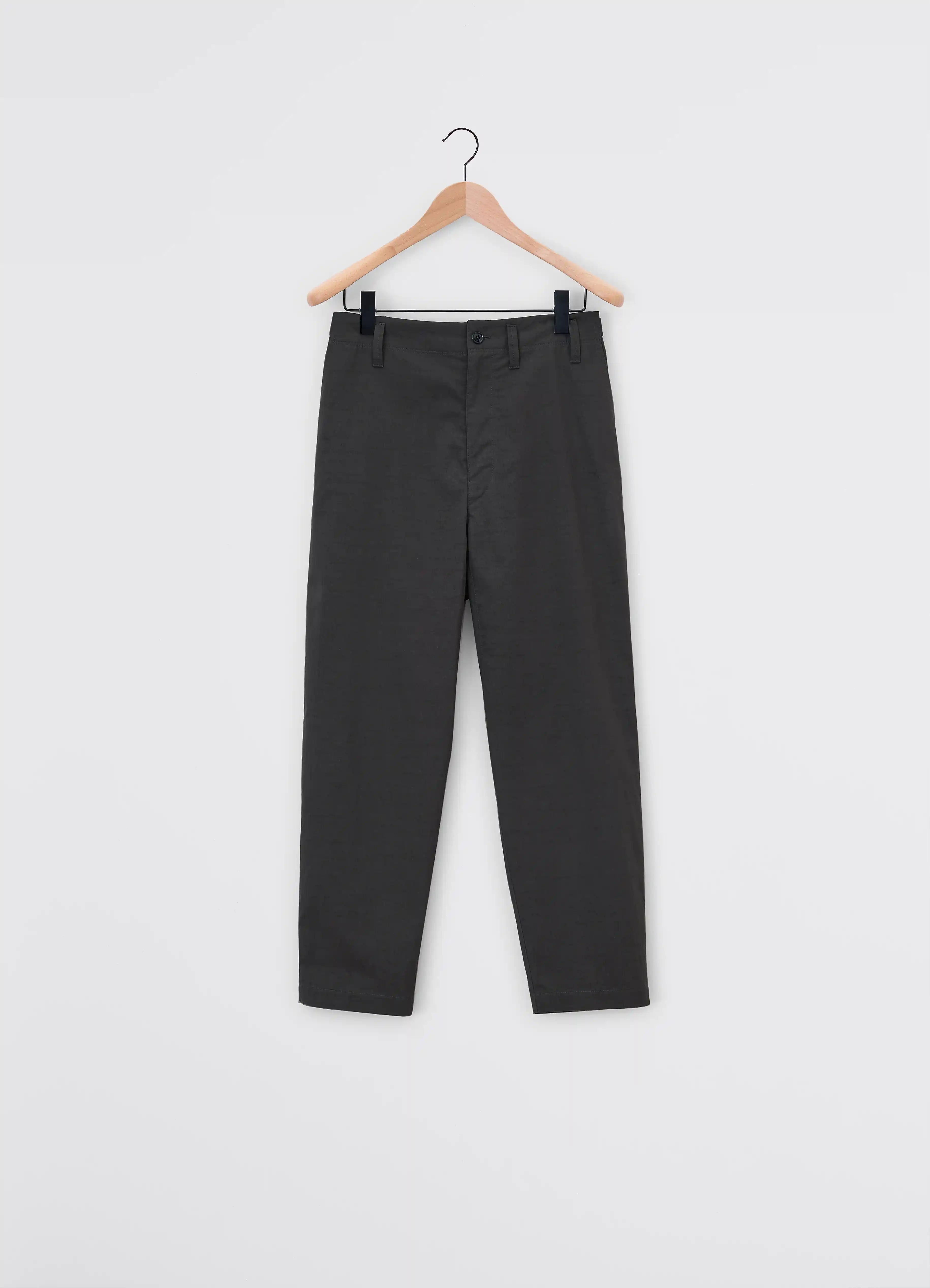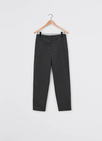 These Carrot Pants are crafted in a light cotton with a water repelling finish, allowing the garment to protect against the element while staying comfortable. The classic LEMAIRE silhouette features a pivot crotch for added comfort of movement, two diagonal seam pockets, belt hoops and a single patch pocket in the back with a buttoned down finish. DETAILS - Straight fit - Corozo buttons - Mid-rise - Zip fly - One buttoned patch pocket Made in Romania Style: PA1129 LF1228 FABRICS & CARE Main Fabric: 66% Cotton / 34% Polyamide/Nylon Main lining: 100% Cotton Soft wash 30° Do not bleach Do not tumble dry Cool ironing Soft dry clean