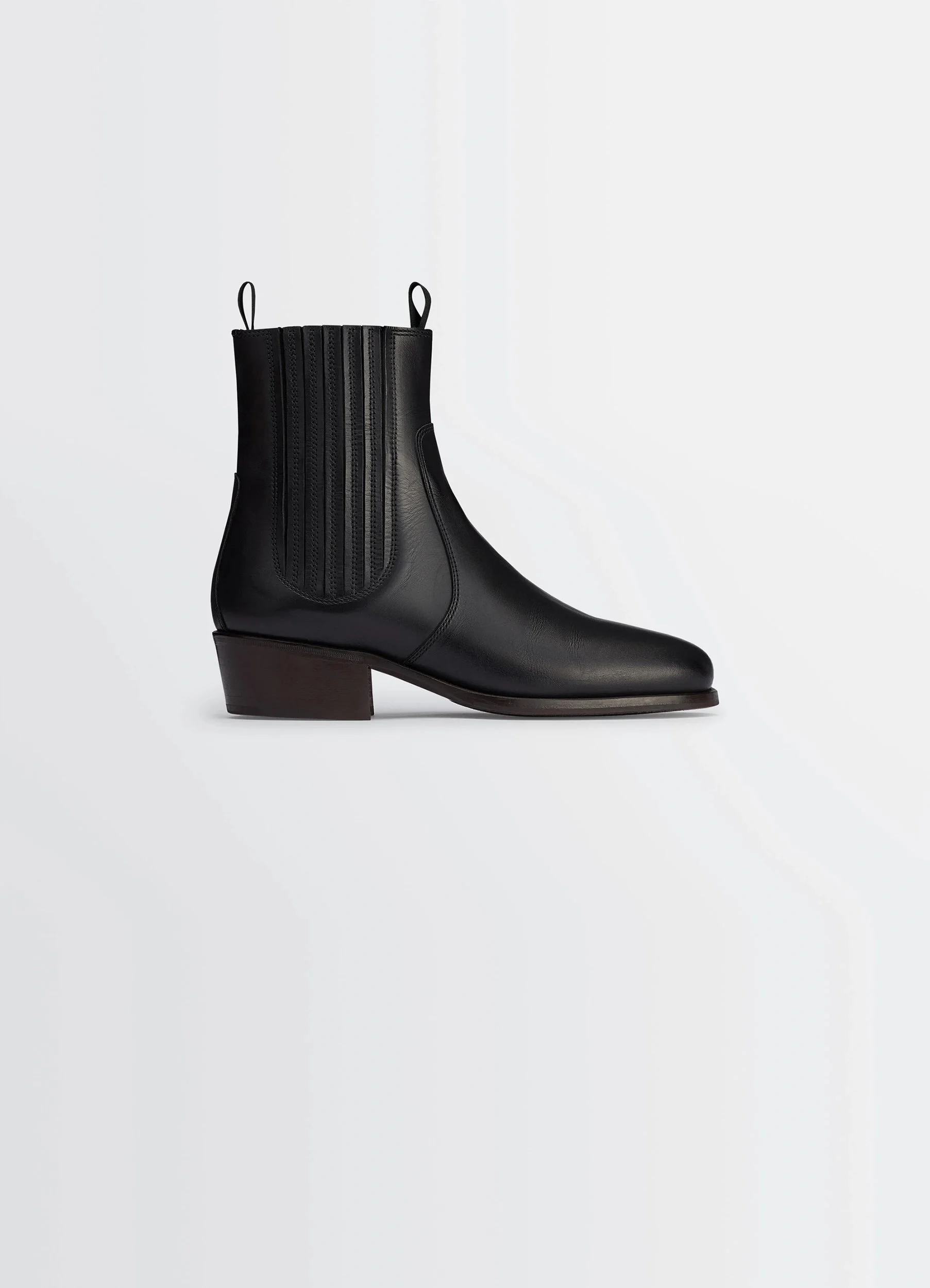 The Chelsea Boots are a new addition to the LEMAIRE vestiaire. This utility-inspired style is crafted from vegetable shiny leather with a soft texture. The lining is made in lambskin Nappa leather and the elastic on the side is covered with leather. This comfortable unisex style is slightly stacked with a 45mm heel. DETAILS - Vegetable shiny leather - Leather covered elastic band - Lambskin Nappa leather lining - 45mm / 1,8in heel Made in Portugal Style: FO0121 LL0106 FABRICS & CARE Main Fabric: 100% Cow Main Lining: 100% Cow If exposed to water or high humidity, dry your shoes well with an absorbent cloth and let them air dry before storing them. Smooth leather: Use a soft cloth and apply a measured amount of uncolour milk or cream. Suede leather: Brush lightly with a sponge or special suede cloth.