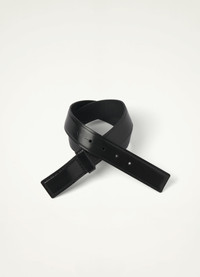 This unisex belt is made of vegetable-tanned leather with a compact grain and a smooth finish. This minimal belt has no apparent hardware, its leather-covered closing system evokes the soft lines of a chocolate square, concealing a metal plate and collar stud closure. DETAILS Stitching details Collar stud closure Creased edges Made in Italy Style : AC1044 LL0054 FABRICS & CARE Main Fabric : 100% Cow Second Fabric : 100% Zamak Do not wash