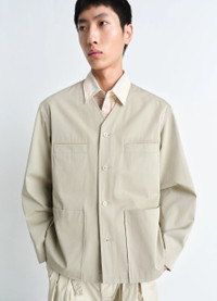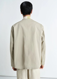 The Collarless Overshirt is cafted in compact cotton twill, a light yet structured material with a textured hand. Featuring a stylish V-neck design, this versatile piece is equipped with two chest welt pockets, meticulously top-stitched for added detail, alongside two lower patch pockets for practicality. The unlined construction enhances breathability, making it ideal for layering. Finished with visible topstitching and corozo buttons, this overshirt embodies an effortless blend of style and comfort. DETAILS - Boxy fit - V neck - Two chest pockets - Two patch pockets - Unlined - Corozo buttons Made in Lithuania Style: OV1011 LF1352 The Model is 187cm / 6'1½'' ft and is wearing a size 48 (M). FABRICS & CARE Main Fabric: 100% Cotton Main Lining: 100% Cotton Do not wash Do not bleach Do not tumble dry Cool ironing Soft dry clean Discover the traceability