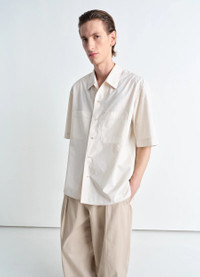 The Convertible Shirt is crafted in lightweight cotton poplin with a soft hand and a satin-like texture. It is a relaxed short-sleeved style featuring a convertible collar and voluminous sleeves for a stylish look. It includes two large patch pockets on the front, complemented by a straight hem with side slits for ease of movement. The shirt is detailed with stitching accents on the patch pockets and the sleeves’ hems, adding a touch of sophistication to this casual essential. DETAILS - Relaxed fit - Convertible collar - Two patch pockets - Corozo buttons Made in Tunisia Style : SH1175 LF1364 The Model is 188cm / 6'2'' ft and is wearing a size 48 (M). FABRICS & CARE Main Fabric: 100% Cotton Soft wash 30° Do not bleach Do not tumble dry Cool ironing Soft dry clean Discover the traceability