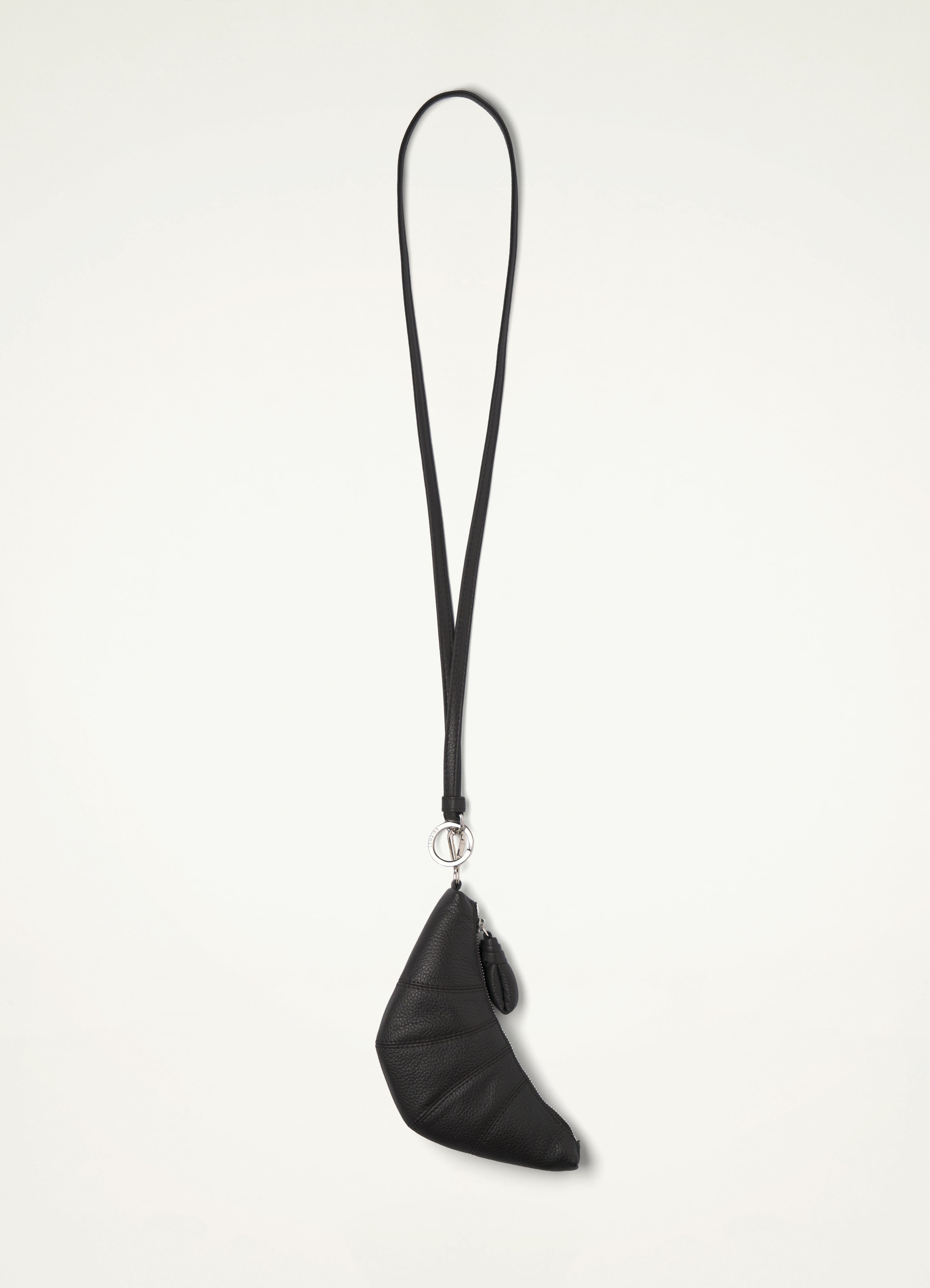 Inspired by the Croissant family, this unisex coin purse is made of soft grained leather that is supple yet resistant. It features a metal zipper to open the pouch which is large enough to fit cards inside. Topstitched cutouts follow the ergonomic lines of the purse. The long removable strap can be worn around the neck or as a crossbody. DETAILS Cotton canvas lining Adjustable strap Metal key ring Engraved logo Metal zip Length 9 cm Width 18 cm Depth 4 cmMade in Spain Style : AC1015 LL0018 FABRICS & CARE Main Material: 100% Cowhide Leather Main Lining: 100% Cotton Do not wash Do not bleach Do not tumble dry Do not iron Professional leather clean only