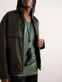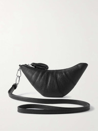The best outfits are often those that refuse to take themselves too seriously. Designed to be worn around the neck, Lemaire's 'Croissant' pouch - modelled after its iconic pastry-inspired bag - has been crafted in Spain from durable full-grain leather using precise topstitched cutouts. It's sized for cards and keys. Size & Fit - Height: 11cm / 4.3in - Width: 19cm / 7.5in Details & Care - Black full-grain leather (Calf) - Detachable leather necklace strap - Silver-tone keyring - Fully lined - Zip fastening - Comes with a dust bag