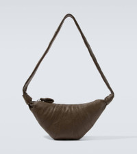 Meet your new favorite design from Lemaire: the Croissant shoulder bag. Featuring a knotted shoulder strap, this Small style is made from leather that’s topstitched to resemble its namesake pastry. Product Details - Material: cow leather - Lining: cotton - Made in Spain - Color: brown - Designer color name: Dark Olive - Closure: zipped top - Item number: P01140111 Size & Fit - Height 18cm-7" - Max. width 34cm-13.5" - Length shoulder strap 100cm-39.5"