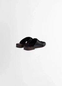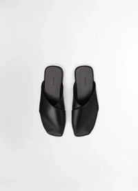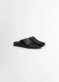 The Cross Flat Sandals debut this season in the LEMAIRE vestiaire, crafted in a soft and shiny vegetable nappa leather. They feature a layered construction of two interwoven leather pieces, an adjustable silver buckled strap on the back of the ankle, square open toes and a small cut-out effect on the side. This style boasts a contrasting flat heel and can be worn from day to evening, including with socks for a mid-season look. DETAILS - Soft Vegetable Nappa leather - Ankle strap with metallic side buckle - Lambskin Nappa leather lining - Flat 30mm / 1,18in heel Made in Portugal Style: FO0163 LL0122 FABRICS & CARE Main Material: 100% Cow Main Lining: 100% Cow Do not wash Do not bleach Do not tumble dry Do not iron Professional leather clean only If exposed to water or high humidity, dry your shoes well with an absorbent cloth and let them air dry before storing them. Smooth leather: Use a soft cloth and apply a measured amount of uncolour milk or cream. Suede leather: Brush lightly with a sponge or special suede cloth. Discover the traceability