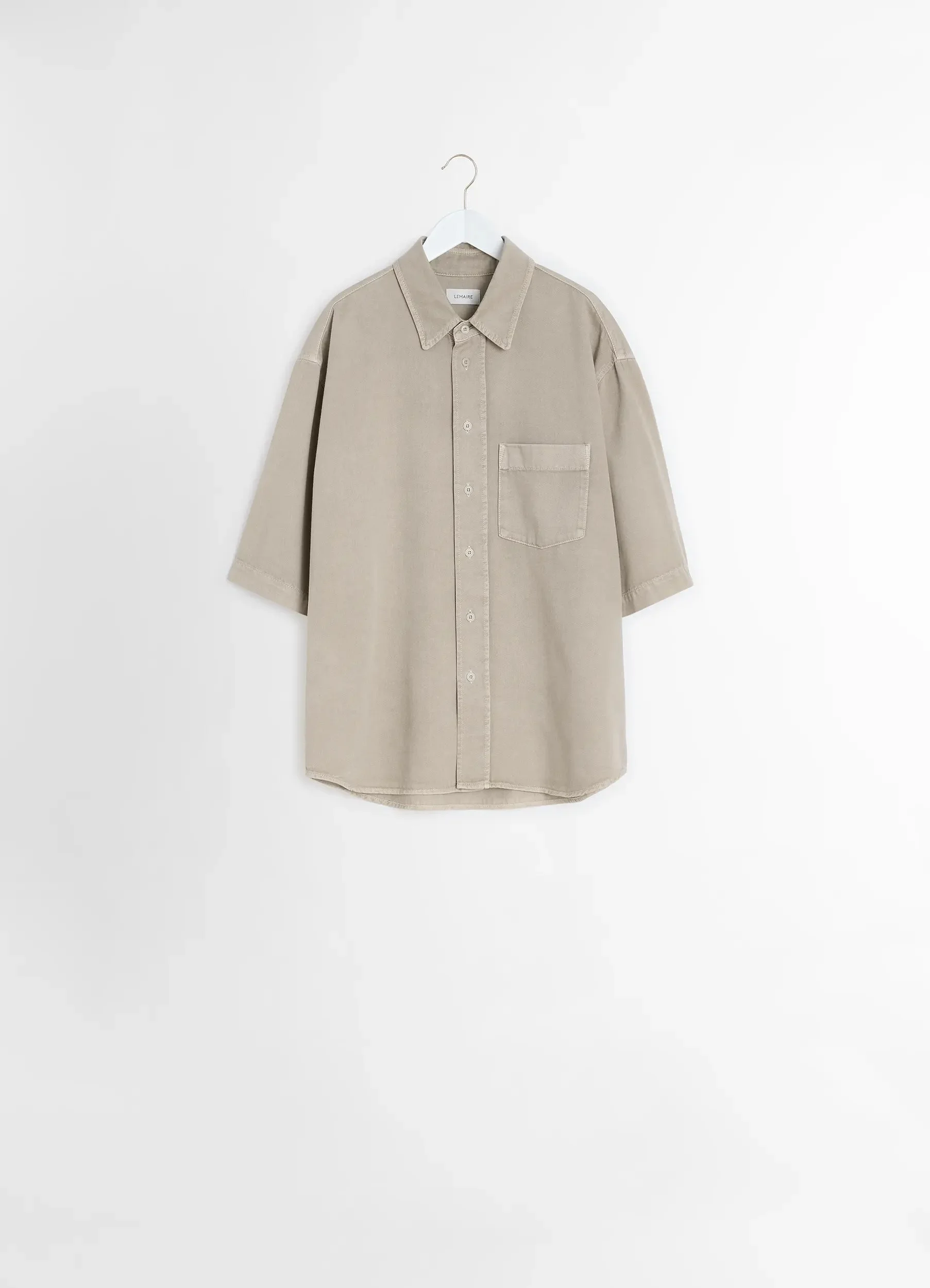 The Short Sleeve Denim Shirt is an oversized cotton style, crafted in garment dyed snow light denim, a classic LEMAIRE fabric with a thick, round hand that has been pigment dyed to evoke a snowy surface. It features a classic collar and a curved hem that adds to its relaxed fit. The front includes a large chest patch pocket and a buttoning placket with tonal corozo buttons, and a slightly longer back. DETAILS - Relaxed fit - Chest patch pocket - Topstitching details - Corozo buttons Made in Morocco Style: SH1174 LD1044 The Model is 188cm / 6'2'' ft and is wearing a size 48 (M). FABRICS & CARE Main Fabric: 100% Cotton Soft wash 30° Do not bleach Do not tumble dry Cool ironing Soft dry clean Wash upside down Discover the traceability