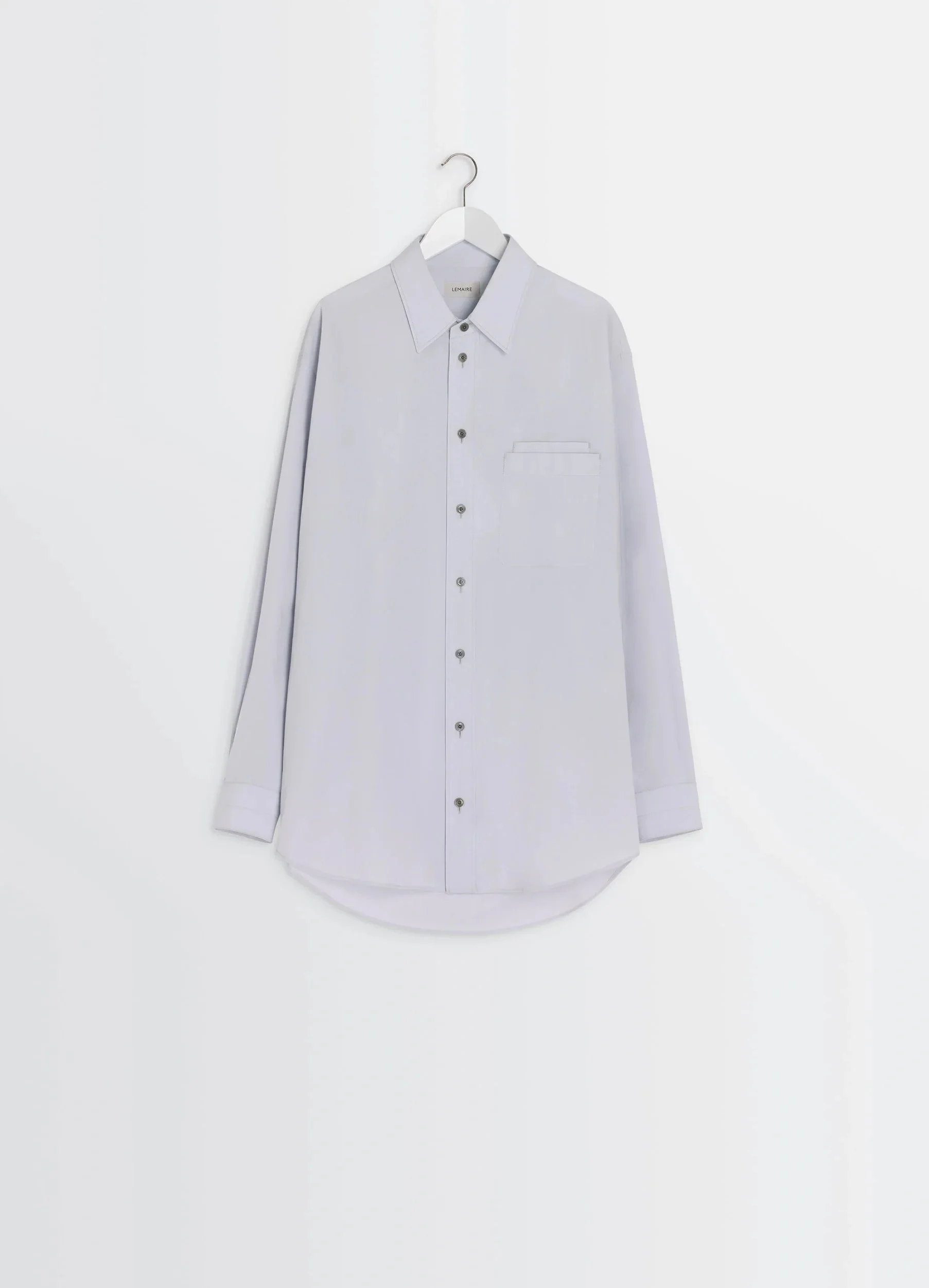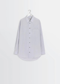 This lightweight shirt with double pocket is inspired by Lemaire's love for movement. It's made from cotton crepe, a fabric structured with a soft hand and a slightly crinkled look. The model is 187 cm tall and is wearing a size 48 (M). DETAILS Lightweight shirt in plain cotton crepe Relaxed cut Shirt collar Front button closure Long sleeves Straight buttoned cuffs Double patch pocket on the chest Flat pleat at the back Made in Tunisia Style : SH1157 LF1399 The model is 187 cm tall and is wearing a size 48 (M). CARE Main Material: 100% Cotton