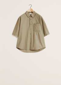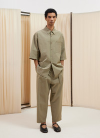 This shirt is a new addition to LEMAIRE’s wardrobe. It is made from a blend of cotton and nylon that has undergone a thorough wash, hence the slightly nibbled seams, granting the garment fluidity. The Double Pocket Short Sleeve Shirt has a relaxed fit with a smooth construction accented by a pointed collar and slightly rounded hem. It features a frontside double pocket. DETAILS Relaxed fit Straight collar Mother-of-pearl buttons Made in Romania Style: SH1079 LF1234 FABRICS & CARE Main Material: 84% Coton / 16% Polyamide Do not wash Do not bleach Do not tumble dry Cool ironing Soft dry clean