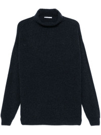 midnight blue wool ribbed knit felted finish high neck melange effect drop shoulder long sleeves ribbed hem Size & Fit Model Measurements: Height: 1.86 m Bust/Chest: 93.0 cm Hips: 95.0 cm Waist: 71.0 cm Model wears size L Fabric and Care Designer Style ID: TO1264LK1027 Designer Colour: BL806 MIDNIGHT NAVY MELANGE Composition: Wool 100% Washing instructions: Hand Wash Made in Italy
