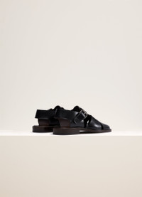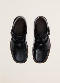 These shoes are made of vegetable tanned cow leather with a shiny finish. They are inspired by fisherman sandals, with a layered construction of two straps woven through structured uppers. They feature adjustable buckled straps on the ankle, square toes and topstitched soles. DETAILS Leather lining Straps with metal buckle Leather sole 2 cm heel Made in Portugal Style : FO0026 LL196 FABRICS & CARE Main Material: 100% Cowhide Leather Main Lining: 100% Calf Leather If exposed to water or high humidity, dry your shoes well with an absorbent cloth and let them air dry before storing them. Care: Smooth leather: Use a soft cloth and apply a measured amount of uncolour milk or cream. Suede leather: Brush lightly with a sponge or special suede cloth.