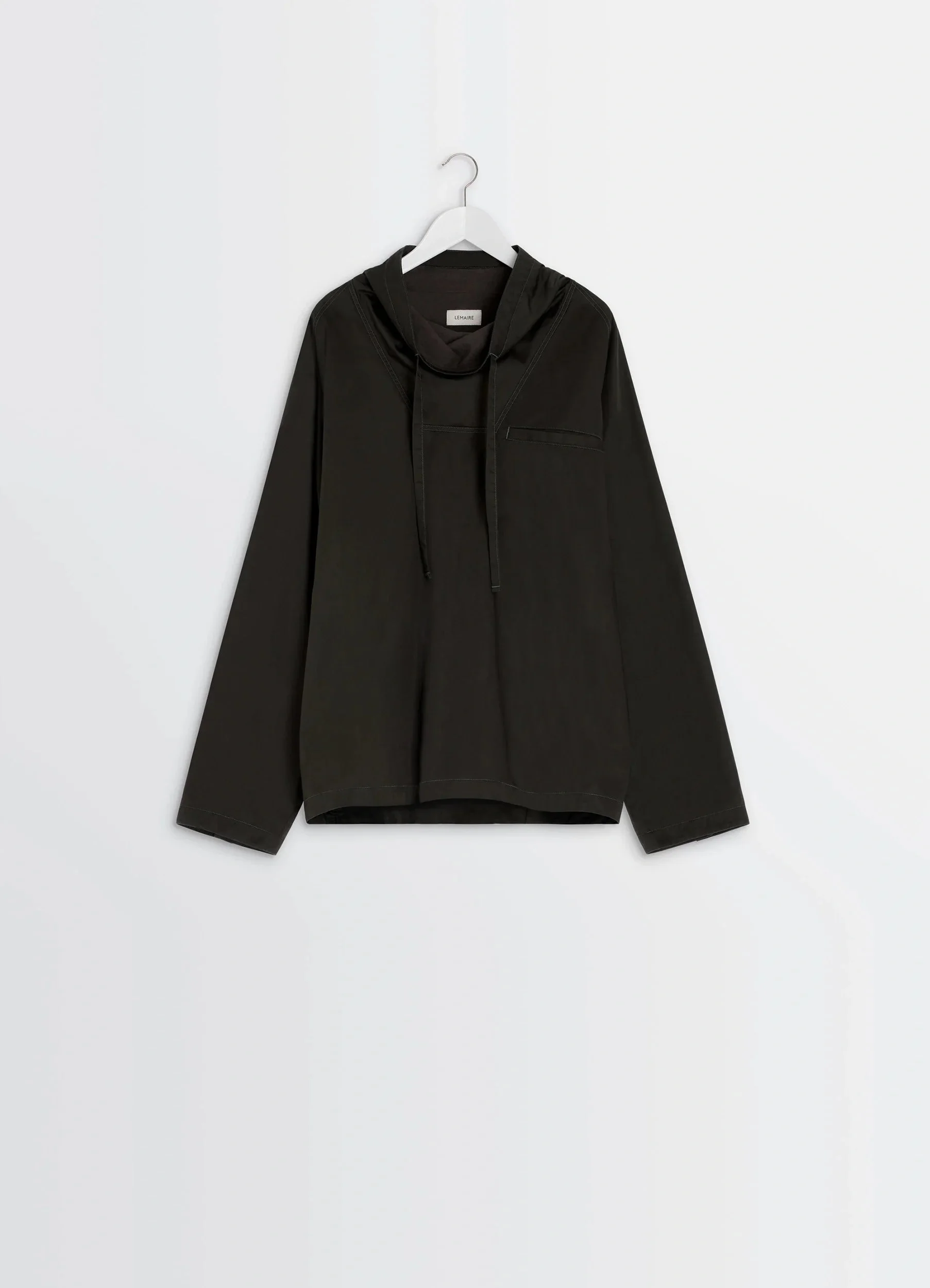 This vareuse reflects Lemaire's attraction for workwear and archetypal pieces. This emblematic piece is reinterpreted here in a lightweight cotton whose satin finish will develop a patina over time. The model is 187 cm tall and is wearing a size 48 (M). This vareuse reflects Lemaire's attraction for workwear and archetypal pieces. This emblematic piece is reinterpreted here in a lightweight cotton whose satin finish will develop a patina over time. The model is 187 cm tall and is wearing a size 48 (M). DETAILS Vareuse in lightweight cotton satin Oversized cut Fully lined model in cotton flannel High neck with drawcord Long raglan sleeves Straight buttoned cuffs Welted chest pocket Made in Romania Style : TO1406 LF1207 The model is 187 cm tall and is wearing a size 48 (M). Vareuse in lightweight cotton satin Oversized cut Fully lined model in cotton flannel High neck with drawcord Long raglan sleeves Straight buttoned cuffs Welted chest pocket Made in Romania Style : TO1406 LF1207 The model is 187 cm tall and is wearing a size 48 (M). CARE Main Material: 100% Cotton Main Lining: 100% Cotton Soft wash 30° Do not bleach Do not tumble dry Cool ironing Soft dry clean Main Material: 100% Cotton Main Lining: 100% Cotton Soft wash 30° Do not bleach Do not tumble dry Cool ironing Soft dry clean