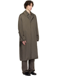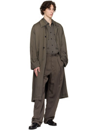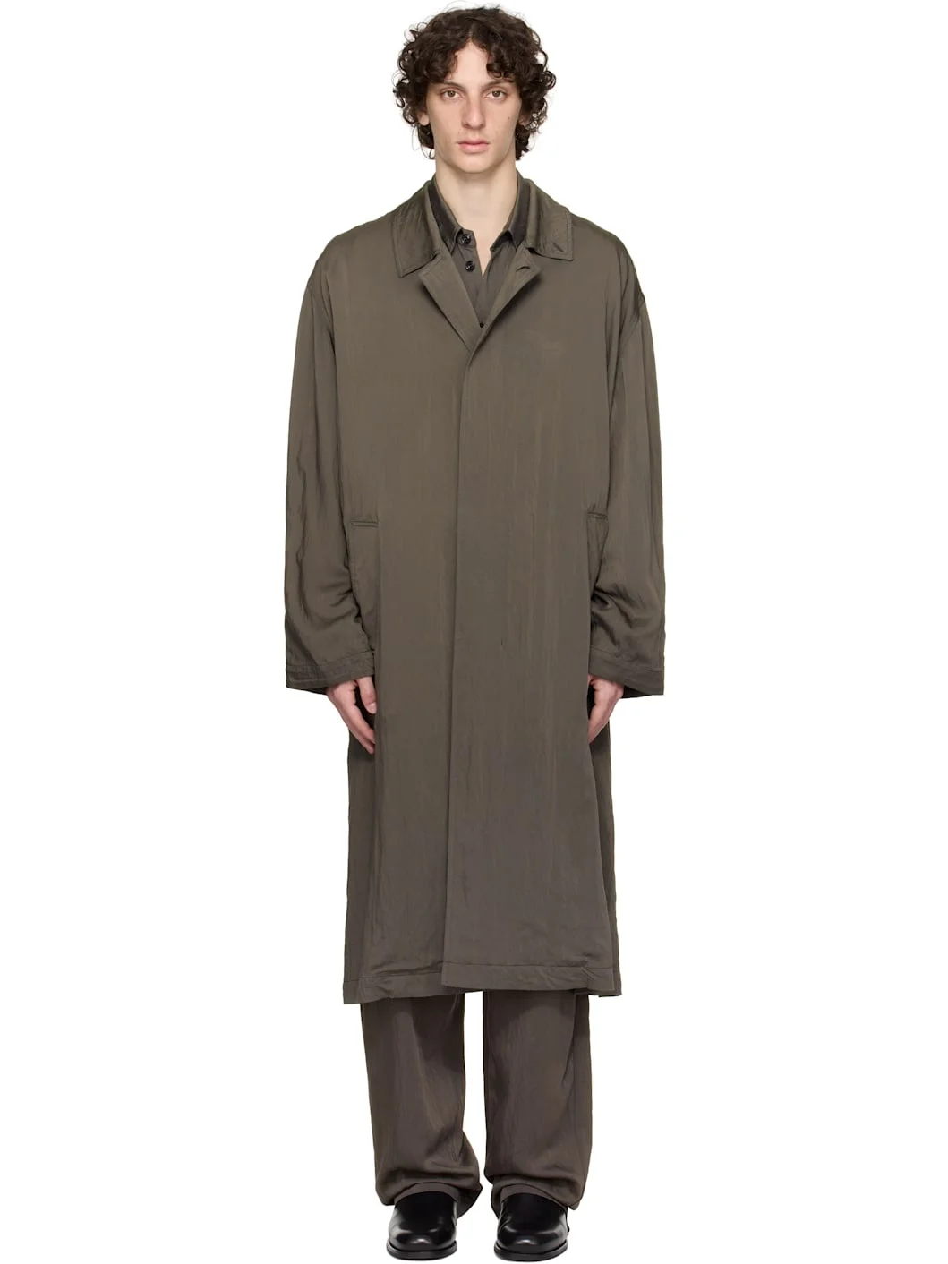 Lightweight and crinkled viscose- and nylon-blend twill coat. · Spread collar · Button closure · Welt pockets · Central vent at back hem · Patch pocket at interior · Adjustable buttoned strap at interior waist · Unlined Supplier color: Bark brown 92% viscose, 8% polyamide. Made in Romania 251646M176000