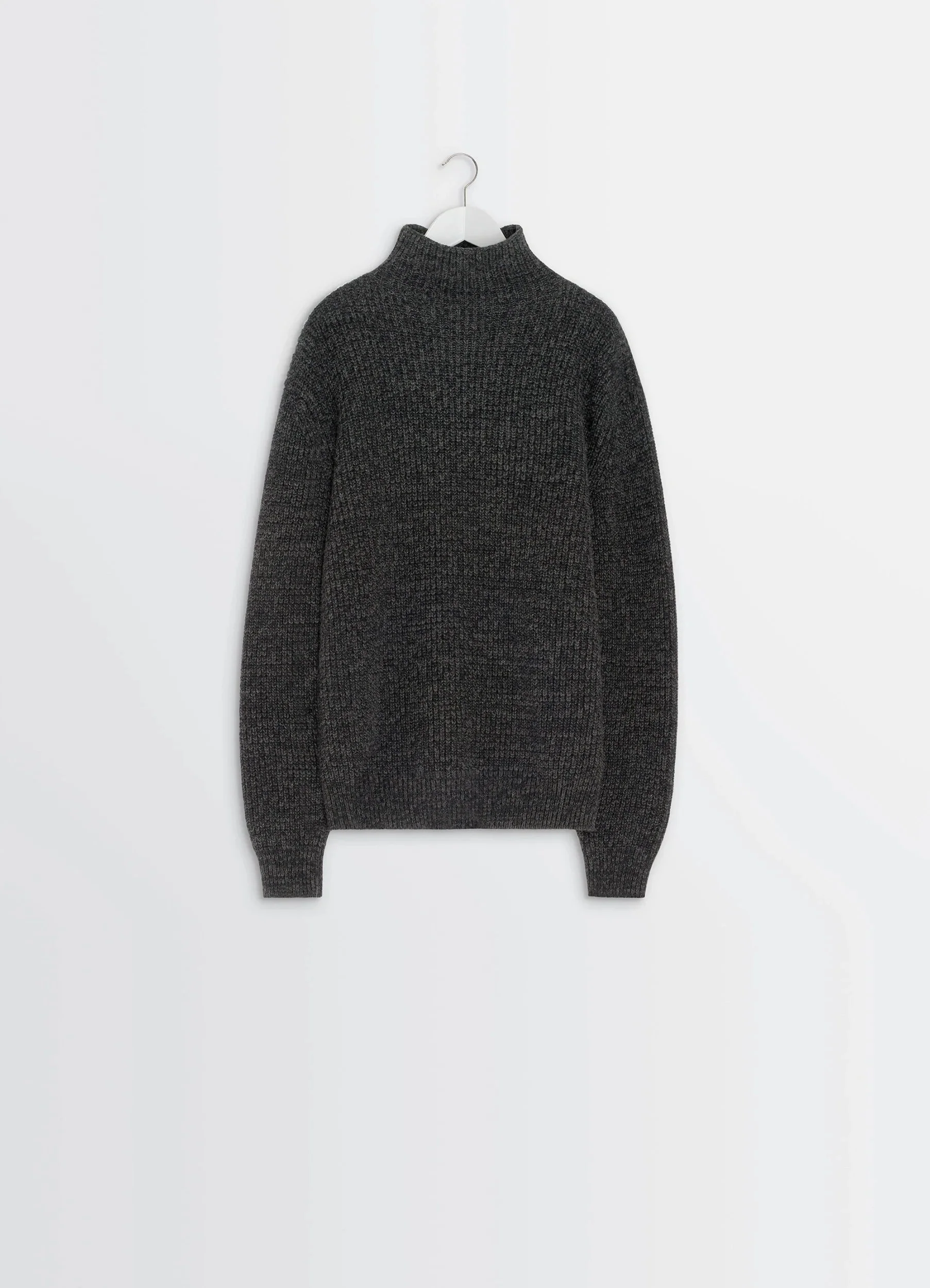 Crafted from a blend of alpaca and yak wool, a densely ribbed knit with a textured look, this high-neck sweater is designed as a warm piece. DETAILS High neck sweater in yak alpaca wool Oversized cut Stand-up collar Long sleeves Rib-knit trim Made in Italy Style : TO1427 LK1029 The models are 177 cm and 187 cm and are wearing sizes 36 (S) and 48 (M). FABRICS & CARE Main Material: 50% Alpaca 50% Yak