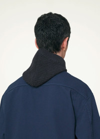 This hood is knitted in an alpaca and merino wool blend with a soft hand and a fluffy feel. It fits snugly around the head, with tight rib knitting framing the face and outlining the neck to isolate warmth. DETAILS Fitted shape Ribbed finishings Made in Italy Style : AC1089 LK121 FABRICS & CARE Main Fabric : 45% Acrylic, 30% Alpaga, 25% Wool Hand wash Do not bleach Do not tumble dry Cool ironing Soft dry clean Dry flat