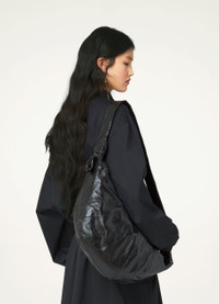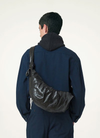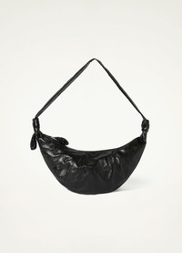 This classic LEMAIRE bag, the largest of the Croissant bag family, is made of coated cotton with a crisp texture and a shiny finish. Inspired by the shape of a croissant pastry, the bag's design is achieved through an assembly of topstitched cutouts. Its ergonomic shape wraps around the body for an easy, casual wear. It features a matching looped zip puller, side knot finishings, a side zipped pocket and a removable A5 pouch. It can be worn as a shoulder or crossbody bag. DETAILS Cotton canvas lining Metal zip Interior patch pocket Removable A5 pouch Length 27 cm Width 6 cm Depth 11 cm Made in Tunisia Style : BG0000 LF1073 FABRICS & CARE Main Material: 100% Cotton Main Lining: 100% Cotton Do not wash Do not bleach Do not tumble dry Do not iron Professional cleaner only