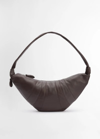 This classic LEMAIRE bag is the largest of the iconic Croissant family. The Large Croissant is made of soft nappa leather, a supple yet resistant fabric. Its smooth surface adds a tactile element and contributes to the durability of the bag’s curve. Inspired by the shape of the croissant pastry, its design is achieved through an assembly of top-stitched cutouts, blending style and functionality. It features a matching looped zip puller, side knot finishings, a side zipped pocket and a removable A5 pouch. It has the capacity for accessories such as a 13-inch laptop computer. Its ergonomic shape wraps around the body for an easy, casual wear. DETAILS - This bag can be worn on the shoulder or cross-body - Height of the shoulder strap: 42cm / 16,5in - Length: 60cm / 24in - Width: 28cm / 11in - Depth: 11cm / 4in - Lining in cotton canvas - Metal Looped zip puller - Removable pouch (A5 format) - Interior patch pocket (can contain small accessories) - Side zipped pocket (can contain small accessories, card holder, Airpods Pro 2 case, keys or wallet) - Main compartment (can contain accessories, smartphone, 4x7-inch book or a 13-inch laptop computer) - Side knot finishings - Embossed logo inside Made in Spain Style: BG0000 LL095 FABRICS & CARE Main Material: 100% Lamb Main Lining: 100% Cotton