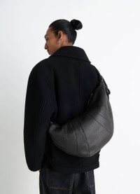 This classic LEMAIRE bag is the largest of the iconic Croissant family. It is made of soft grained leather that is supple yet resistant. Its distinctive surface adds a tactile element and contributes to the durability of the bag’s curve. Inspired by the shape of the croissant pastry, its design is achieved through an assembly of top-stitched cutouts, blending style and functionality. It also features a matching looped zip puller, side knot finishings, a side zipped pocket and a removable A5 pouch. The Large Croissant has the capacity for accessories such as a 13-inch laptop computer. Its ergonomic shape wraps around the body for an easy, casual wear. DETAILS This bag can be worn on the shoulder or crossbody Height of the shoulder strap: 42 cm / 16,5 in Lining in cotton canvas Metal Looped zip puller Removable pouch (A5 format) Interior patch pocket (can contain small accessories) Side zipped pocket (can contain small accessories, card holder, Airpods Pro 2 case, keys or wallet) Main compartment (can contain accessories, smartphone, 4x7-inch book or a 13-inch laptop computer) Side knot finishings Embossed logo inside Length: 28 cm / 11 in Width: 60 cm / 24 in Depth: 11 cm / 4 in Made in Spain Style: BG0000 LL0018 FABRICS & CARE Main Material: 100% Cowhide Leather Main Lining: 100% Cotton Do not wash Do not bleach Do not tumble dry Do not iron Professional leather clean only
