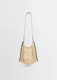 The result of a collaboration between Lemaire and Filt, the oldest French manufacturer of net shopping bags (established 1860), this large shopping bag is elegantly inspired by an everyday object. The large shopping bag is made from a combination of nylon mesh and a vegetable-tanned leather shoulder strap, demonstrating Lemaire's commitment to craftsmanship. DETAILS Filt large shopping bag in nylon net soft openwork model Shoulder or crossbody carry Vegetable-tanned leather strap Side metal rings Interior labels including: Lemaire-embossed leather and Filt-logo woven label Silver-tone hardware Dimensions: Length: 32 cm Height: 33 cm Depth: 1 cm Arrow height: 48 cm Strap length: 80 cm Made in France Style : BG0075 LF1269 FABRICS & CARE Main Fabric: 100% Polyester Second Fabric: 100% Cow Main lining: 100% Polyamide/Nylon Do not wash Do not bleach Do not tumble dry Do not iron Professional leather clean only