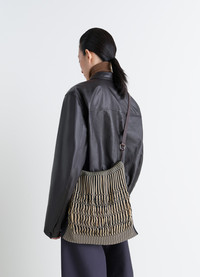 The result of a collaboration between Lemaire and Filt, the oldest French manufacturer of net shopping bags (established 1860), this large shopping bag is elegantly inspired by an everyday object. The large shopping bag is made from a combination of nylon mesh and a vegetable-tanned leather shoulder strap, demonstrating Lemaire's commitment to craftsmanship. DETAILS Filt large shopping bag in nylon net soft openwork model Shoulder or crossbody carry Vegetable-tanned leather strap Side metal rings Interior labels including: Lemaire-embossed leather and Filt-logo woven label Silver-tone hardware Dimensions: Length: 32 cm Height: 33 cm Depth: 1 cm Arrow height: 48 cm Strap length: 80 cm Made in France Style : BG0075 LF1269 FABRICS & CARE Main Fabric: 100% Polyester Second Fabric: 100% Cow Main lining: 100% Polyamide/Nylon Do not wash Do not bleach Do not tumble dry Do not iron Professional leather clean only