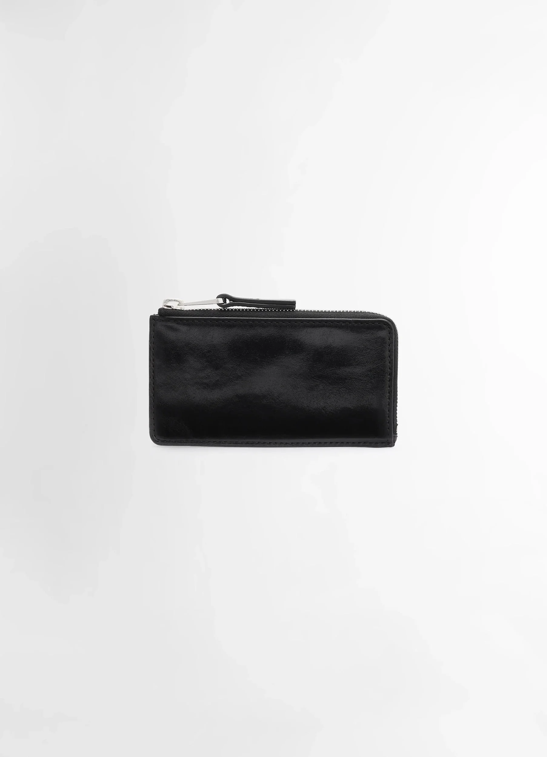 Highlighting LEMAIRE's commitment to leather craftsmanship, this season sees the debut of the Patina Zipped line, crafted in a soft black leather with a subtle shine. This Patina Zip Coin Card Holder zips open to reveal a zipped internal compartment and six card slots. There is an additional external compartment as well. It is lined with leather and comes with a signature zip puller. DETAILS Handmade External compartment Zipped compartment 6 card slots Coin pocket with snap button Branded puller with leather tab Leather lining Zipped closure Made in Spain Style: SL0055 LL0132 FABRICS & CARE Main Fabric: 100% Cow Main Lining: 100% Cow Do not wash Do not bleach Do not tumble dry Do not iron Professional leather clean only