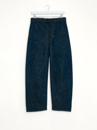 Lemaire's Twisted Belted Pants in Denim Indigo is a stylish and versatile addition to any wardrobe. These pants feature a unique twisted design and a flattering belted waist. - Composition: Main fabric: 100% cotton Main lining: 100% cotton - Unique twisted design for a modern look - Flattering belted waist for a customizable fit - Crafted in a classic denim indigo color - Versatile style suitable for various occasions - Functional pockets for added convenience - Made in - SKU: PA326LD1056 BL760