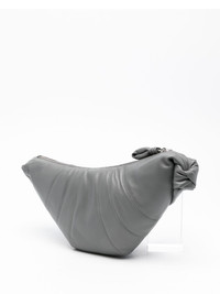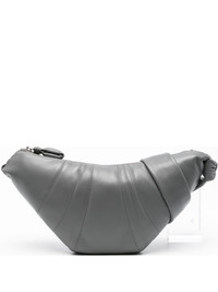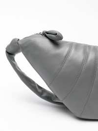 Croissant knot leather shoulder bag Highlights - Grey - Lambskin - Strap knot-detail - Zip fastening - Curved shape - Panelled design Imported Composition Lining: Cotton 100% Outer: Lambskin 100% SIZE & FIT Model measurements Height 6 ft 2 in(1.88 m) Bust/Chest 37.4 in(95 cm) Hips 38.58 in(98 cm) Waist 31.1 in(79 cm) Measurement DEPTH 2.75 in(7 cm) HEIGHT 7.08 in(18 cm) STRAP 39.37 in(100 cm) WIDTH 17.71 in(45 cm) Washing instructions Do Not Wash/Do Not Dry Clean