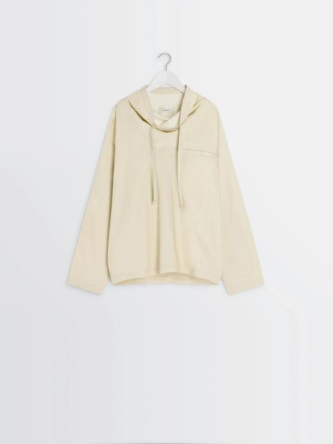 This vareuse reflects Lemaire's attraction for workwear and archetypal pieces. This emblematic piece is reinterpreted here in a lightweight cotton whose satin finish will develop a patina over time. The model is 187 cm tall and is wearing a size 48 (M). This vareuse reflects Lemaire's attraction for workwear and archetypal pieces. This emblematic piece is reinterpreted here in a lightweight cotton whose satin finish will develop a patina over time. The model is 187 cm tall and is wearing a size 48 (M). DETAILS Vareuse in lightweight cotton satin Oversized cut Fully lined model in cotton flannel High neck with drawcord Long raglan sleeves Straight buttoned cuffs Welted chest pocket Made in Romania Style : TO1406 LF1207 The model is 187 cm tall and is wearing a size 48 (M). Vareuse in lightweight cotton satin Oversized cut Fully lined model in cotton flannel High neck with drawcord Long raglan sleeves Straight buttoned cuffs Welted chest pocket Made in Romania Style : TO1406 LF1207 The model is 187 cm tall and is wearing a size 48 (M). CARE Main Material: 100% Cotton Main Lining: 100% Cotton Soft wash 30° Do not bleach Do not tumble dry Cool ironing Soft dry clean Main Material: 100% Cotton Main Lining: 100% Cotton Soft wash 30° Do not bleach Do not tumble dry Cool ironing Soft dry clean
