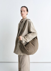 This season sees the debut of the XL Croissant bag, the largest within our Croissant family. Crafted entirely in a heavy cotton canvas with a hand similar to denim, this unisex and spacious style can be worn cross-body or over the shoulder, and it can house a laptop, as well as any weekend essentials. This surprisingly lightweight style is entirely leather free. DETAILS - This bag can be worn on the shoulder or cross-body - Height of the shoulder strap: 42cm / 16,5in - Length: xxxx - Width: xxxx - Depth: xxxx - Lining in cotton canvas - Looped zip puller - Removable pouch (A5 format) ???? - Interior patch pocket (can contain small accessories) - Side zipped pocket (can contain small accessories, card holder, Airpods Pro 2 case, keys or wallet) - Main compartment (can contain accessories, smartphone, 4x7-inch book or a 13-inch laptop computer) - Side knot finishings - Embossed logo inside Made in Spain Style: BG0150 LF1400 FABRICS & CARE Main Fabric: 85% Cotton, 15% Polyester Main Lining: 100% Cotton Do not wash Do not bleach Do not tumble dry Do not iron Professional cleaner only
