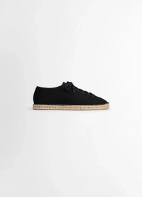 These espadrilles debut this season within LEMAIRE’s Linoleum shoe line. This casual unisex design is crafted in a light cotton canvas with a cord and transclucid rubber cupsole, allowing the handcrafted sole work to appear when looking from underneath. The tightly laced Linoleum espadrilles offer a considered summer option for both office time and leisure. DETAILS - Light cotton canvas - Tight laces - Cord and rubber stitched soles Made in Portugal Style: FO0200 LF1405 FABRICS & CARE Main Material: 100% Cotton Main Lining: 100% Cotton If exposed to water or high humidity, dry your shoes well with an absorbent cloth and let them air dry before storing them. Brush them lightly with a soft brush to avoid damaging the textile fibres. Discover the traceability