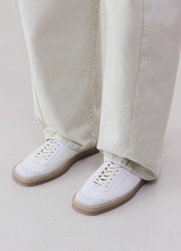 These trainers are made of soft cow leather with a fine grain. Their casual shape is inspired by vintage sports, stitching details and a suede cutout on the toe giving them a retro feel. Their tight lacing allows for a snug fit, square toes and sewed rubber soles adding to their flexibility. DETAILS Leather lining Stitching details Cotton laces Suede cutout Structured insole Made in Portugal Style : FO0037 LL0010 This model is. wearing a size 43 FABRICS & CARE Main Fabric : 100% Cow Main Lining : 100% Veal - Calf Second Fabric : 100% Cow