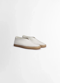 These unisex sneakers are part of LEMAIRE’s Linoleum shoe collection. Their casual design is inspired by vintage gymnasium sport shoes with a classic LEMAIRE twist. The shape of the Linoleum Piped Sneakers is obtained with a simple construction of two pieces of smooth soft cow leather with a fine grain that are sewn together on the front and sealed with leather piping. A square toe and a stitched cupsole add to their flexibility. DETAILS - Square toe - Stitched cupsole - Stitching and piped details Made in Portugal Style: FO0098 LL0003 FABRICS & CARE Main Material: 100% Cow Main Lining: 100% Cow Do not wash Do not bleach Do not tumble dry Do not iron Professional leather clean only If exposed to water or high humidity, dry your shoes well with an absorbent cloth and let them air dry before storing them. Smooth leather: Use a soft cloth and apply a measured amount of uncolour milk or cream. Suede leather: Brush lightly with a sponge or special suede cloth.