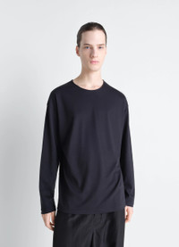 This long-sleeved T-shirt is a LEMAIRE wardrobe essential. It is crafted from cotton-and-silk interlock jersey. The model is 187 cm tall and wears a size 48 (M). This long-sleeved T-shirt is a LEMAIRE wardrobe essential. It is crafted from cotton-and-silk interlock jersey. The model is 187 cm tall and wears a size 48 (M). DETAILS Long-sleeved T-shirt in cotton-silk interlock jersey Straight fit Round neckline Long sleeves Made in Portugal Style: TS0019 LJ1055 Long-sleeved T-shirt in cotton-silk interlock jersey Straight fit Round neckline Long sleeves Made in Portugal Style: TS0019 LJ1055 CARE Main fabric: 80% cotton, 20% silk Soft wash 30° Do not bleach Do not tumble dry Cool ironing Do not dry clean Dry flat Main fabric: 80% cotton, 20% silk Soft wash 30° Do not bleach Do not tumble dry Cool ironing Do not dry clean Dry flat