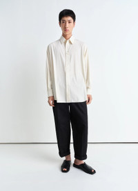 This Loop Shirt is crafted from fluid technical Lyocell a lightweight yet structured material with a soft hand and a fresh feel on the skin. The Double Pocket Short Sleeve Shirt features a long and relaxed fit with a smooth construction, accented by a pointed collar and slightly rounded hem. Its minimal design include a loop on the buttoning placket, to carry around reading glasses or sunglasses. DETAILS Relaxed long fit Long sleeves Straight collar Loop detail on the buttoning placket Mother-of-pearl buttons Made in Portugal Style: SH1169 LF1370 The Model is 187cm / 6'1½'' ft and is wearing a size 48 (M). FABRICS & CARE Main Fabric: 69% Lyocell, 31% Polyamide/Nylon Soft wash 30° Do not bleach Do not tumble dry Cool ironing Soft dry clean Discover the traceability