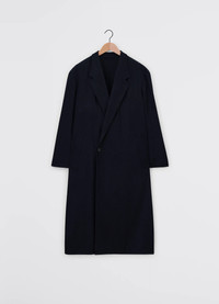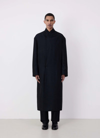 This new unisex coat embodies LEMAIRE’s focus on soft tailoring. The Maxi Double Breasted Coat is crafted in a cashmere blend that is ultra soft and lightweight. This comfortable, oversized style was built following traditional tailoring techniques, with elements of deconstruction allowing more freedom of movement. The notched collar is quite deep, the shoulders are slightly dropped, and the coat closes at the hip with a single corozo button located at the hip. Trench pockets are situated at the lower hips and patch pockets are located inside this fully lined piece. DETAILS - Relaxed fit - Notched collar - Corozo button - Fully lined Made in Hungary Style: CO1074 LF1158 FABRICS & CARE Main Fabric: 50% Cashmere / 47% Polyamide/Nylon / 3% Wool Main Lining: 51% Cotton / 49% Viscose Do not wash Do not bleach Do not tumble dry Cool ironing Soft dry clean