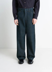 These oversized pants reflect Lemaire's love for workwear and reinterpretation of archetypal pieces. They are made from thick denim, a staple of the house's wardrobe, in a deep indigo wash. The model is 187 cm tall and is wearing a size 48 (M). These oversized pants reflect Lemaire's love for workwear and reinterpretation of archetypal pieces. They are made from thick denim, a staple of the house's wardrobe, in a deep indigo wash. The model is 187 cm tall and is wearing a size 48 (M). DETAILS Maxi Workwear pants in garment-dyed heavy denim Oversized cut Belt loops at the waistband Closure with hook and hidden buttons Italian pockets Ticket pocket Buttoned patch pocket at the back Lemaire embossed leather jacron at the back Adjustable waistband with metal buckles at the back Made in Italy Style : PA1244 LD1056 The model is 187 cm tall and is wearing a size 48 (M). Maxi Workwear pants in garment-dyed heavy denim Oversized cut Belt loops at the waistband Closure with hook and hidden buttons Italian pockets Ticket pocket Buttoned patch pocket at the back Lemaire embossed leather jacron at the back Adjustable waistband with metal buckles at the back Made in Italy Style : PA1244 LD1056 The model is 187 cm tall and is wearing a size 48 (M). CARE Main Material: 100% Cotton Main Lining: 65% Polyester 35% Cotton Jacron: 100% Cow Leather Main Material: 100% Cotton Main Lining: 65% Polyester 35% Cotton Jacron: 100% Cow Leather
