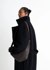 This classic LEMAIRE bag is made of soft grained leather that is supple yet resistant. Inspired by the shape of a croissant pastry, the bag's design is achieved through an assembly of topstitched cutouts. It features a matching looped zip puller and side knot finishings, and is worn as a shoulder or crossbody bag. DETAILS Cotton canvas lining Metal zip Interior patch pocket Length 22 cm Width 47 cm Depth 7 cmMade in Spain Style : BG0001 LL0018 FABRICS & CARE Main Material: 100% Cowhide Leather Main Lining: 100% Cotton Do not wash Do not bleach Do not tumble dry Do not iron Professional leather clean only