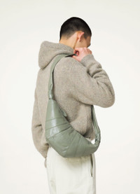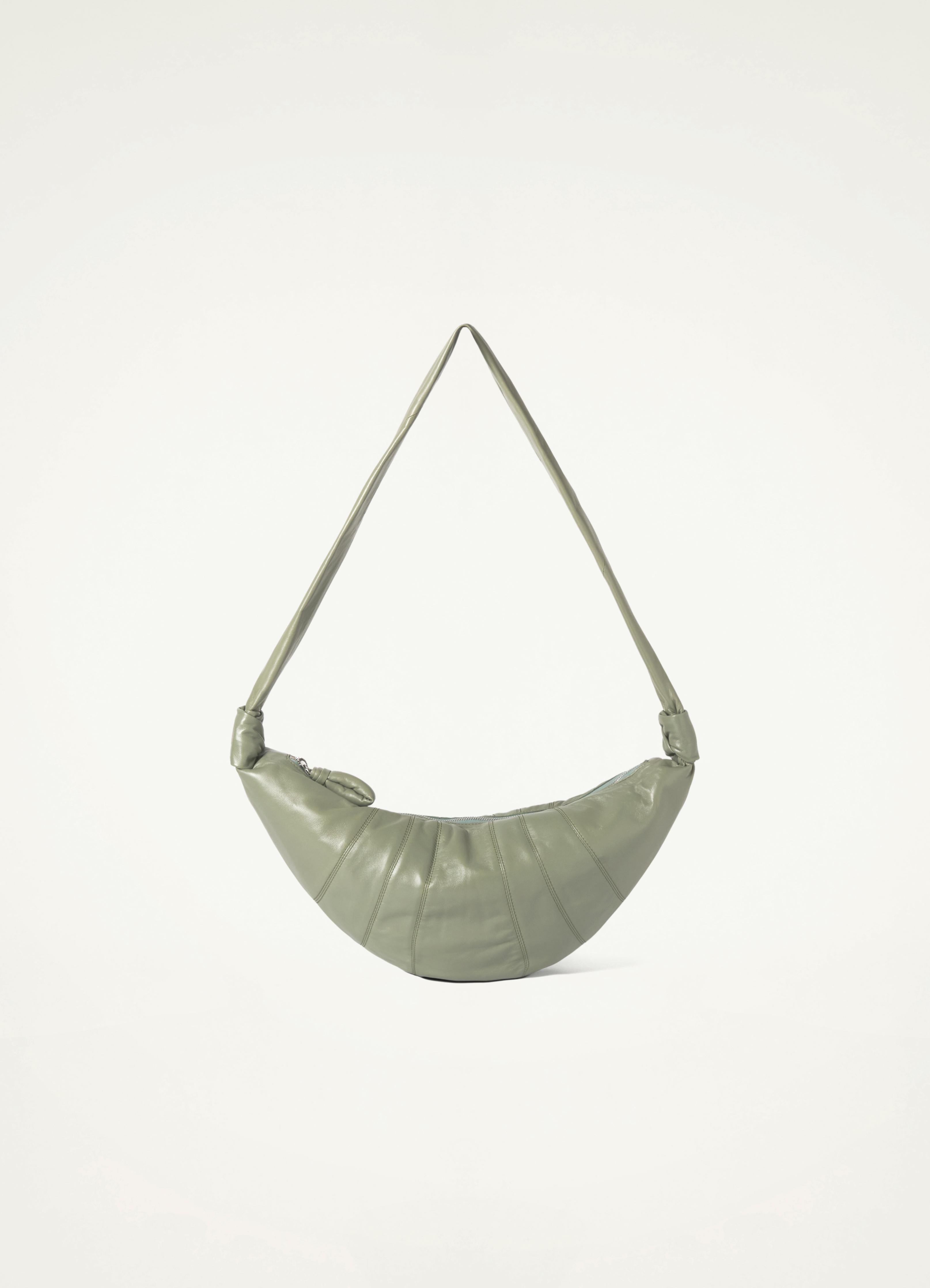This classic LEMAIRE bag is made of smooth nappa leather with a soft touch. Inspired by the shape of a croissant pastry, the bag's design is achieved through an assembly of topstitched cutouts. It features a matching looped zip puller and side knot finishings, and is worn as a shoulder or crossbody bag. DETAILS Cotton canvas lining Metal zip Made in Spain Style : BG0001 LL095 FABRICS & CARE Main Fabric : 100% Lamb Main Lining : 100% Coton Do not wash Do not bleach Do not tumble dry Do not iron Professional leather clean only