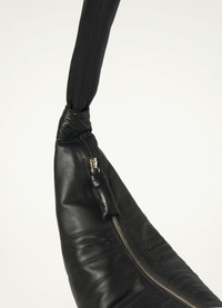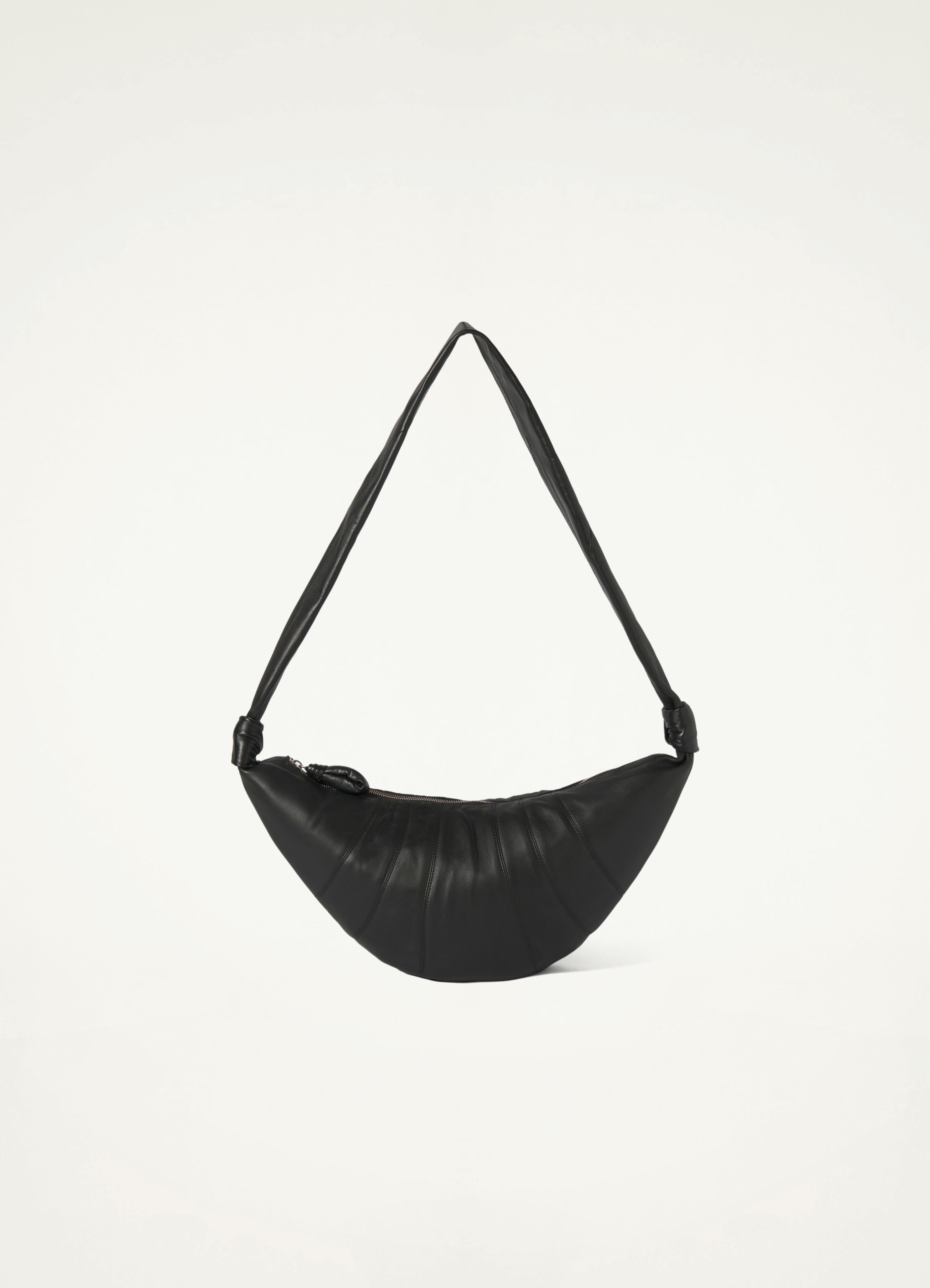 This classic LEMAIRE bag is made of smooth nappa leather with a soft touch. Inspired by the shape of a croissant pastry, the bag's design is achieved through an assembly of topstitched cutouts. It features a matching looped zip puller and side knot finishings, and is worn as a shoulder or crossbody bag. DETAILS Cotton canvas lining Metal zip Made in Spain Style : BG0001 LL095 FABRICS & CARE Main Fabric : 100% Lamb Main Lining : 100% Coton Do not wash Do not bleach Do not tumble dry Do not iron Professional leather clean only