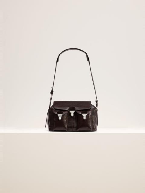This unisex bag is part of the Gear line, a new addition to LEMAIRE’s family of accessories. Blending functionality and elegance, its design borrows codes and details of vintage tool bags with a modern twist. The Medium Gear bag is made of a smooth irregular grained vegetable-tanned leather with a shiny finish. An external back zipped pocket and two front pockets can fit small accessories while the main compartment welcomes daily essentials like a smartphone or a 11x18cm/4x7in book, protected by a zipped closure. An adjustable strap making its way around the bag allows it to be worn in different ways: on the shoulder or cross-body. DETAILS - Suede lining - Adjustable shoulder handle with shoulder pad - Leather strap crossing the inside of the bag - Height of the strap: 30 cm / 12-inch - Length: 34 cm / 13,4-inch - Width: 25 cm / 10-inch - Depth: 16 cm / 6,3-inch - Main compartment zip closure (can contain accessories, a 11x18cm/4x7in book) - External back zipped pocket (can contain accessories such as a smartphone) - Two front pockets (can contain small accessories, card holder, AirPods Pro 2 case) - Logo embossed Made in Spain Style: BG0096 LL0067 FABRICS & CARE Main Material: 100% Cow Main Lining: 100% Cow Do not wash Do not bleach Do not tumble dry Do not iron Professional leather clean only